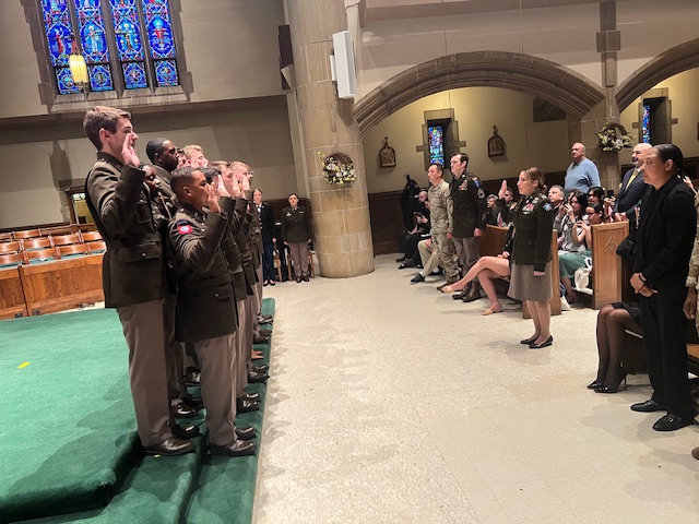 The Star Spangled Banner Chapter supports three US Army ROTC programs in the greater Baltimore area. Loyola University held their Commisioning Ceremony on 22 May 2025. Col (Ret) Frank Hilsher, our ROTC Chairperson, attended and presented the  ROTC MOAA Leadership Award to Cadet Reese Kropp and presented a copy of the Army Officers Guide to the 13 new 2LT's.