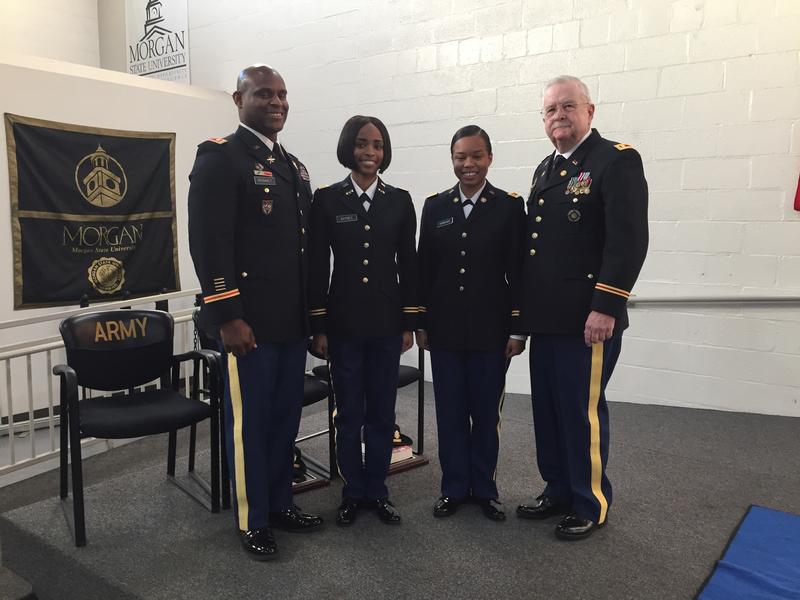 Morgan State Univeristy Bear Battalion commissions two new 2LTs. LTC (R) Davidson from the Star Spangled Chapter was on hand to present the two new 2LTs with a copy of the Army Officer Guide form the chapter.