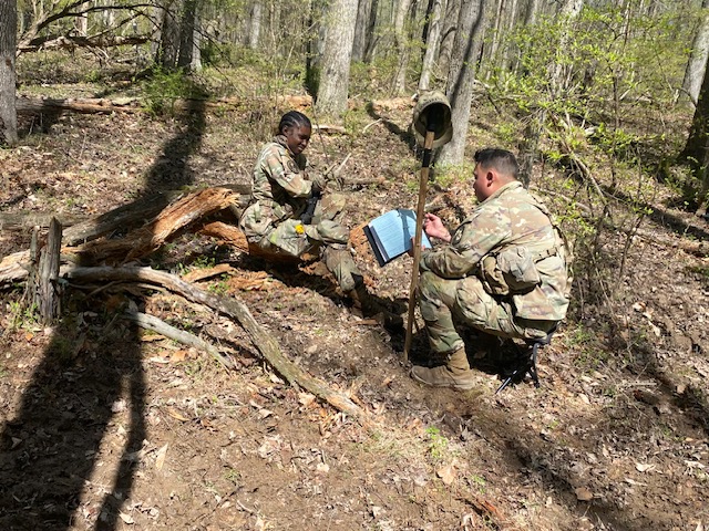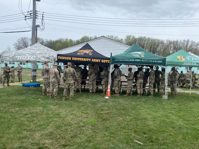 11 April 2024-- The Joint Field Training Exercise was held at the MDARNG Training area in Harford County, MD. Loyola, Towson, Johns Hopkins, Morgan State & McDaniels Universities participated for real army and team building exercises
