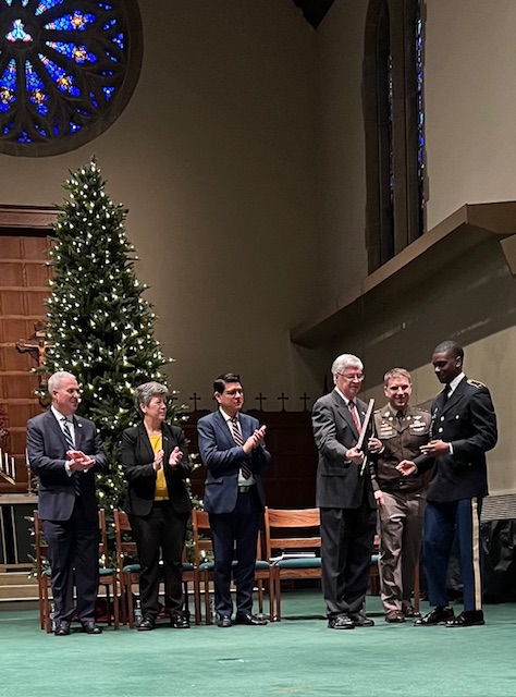 The Star Spangled Banner Chapter supports three US Army ROTC programs in the greater Baltimore area. Loyola & Towson Universities held their Winter Commisioning Ceremony on 19 Dec 2025. Col (Ret) Frank Hilsher, our ROTC Chairperson, attended and was the guest speaker. Three Towson University Cadets were sworn in.