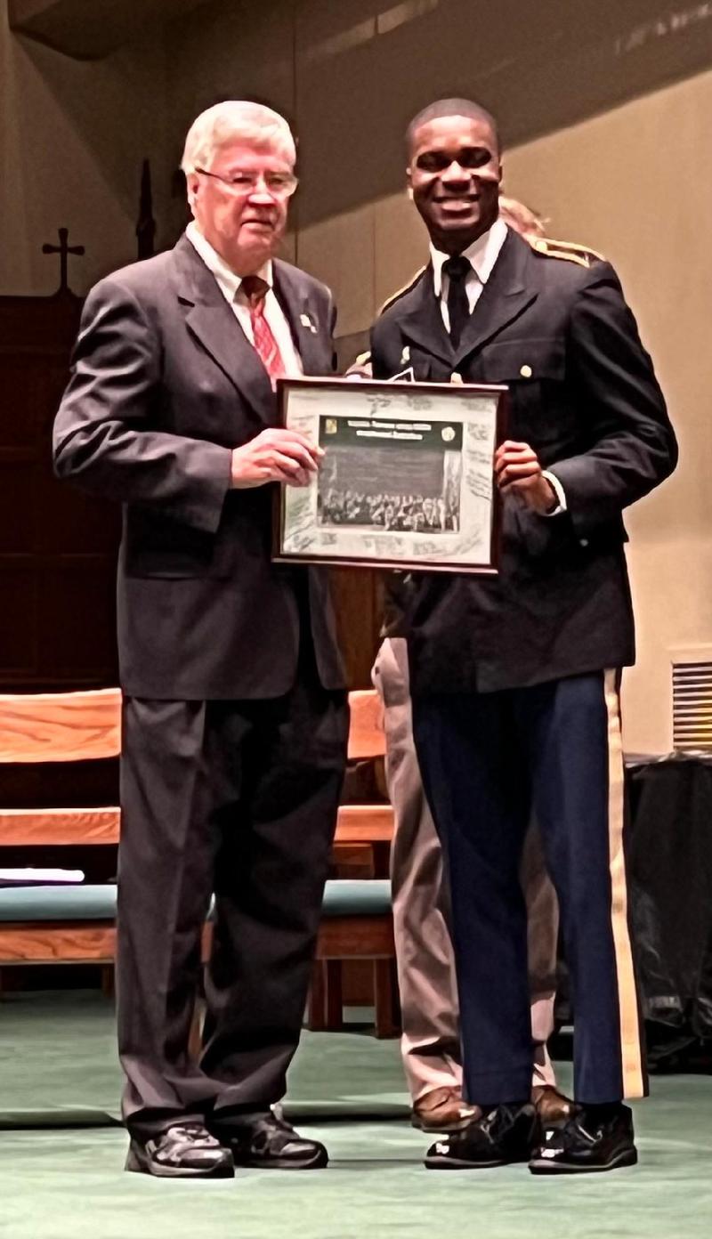 Col (Ret) Frank Hilsher receives thank you momento from Loyola University EXO.